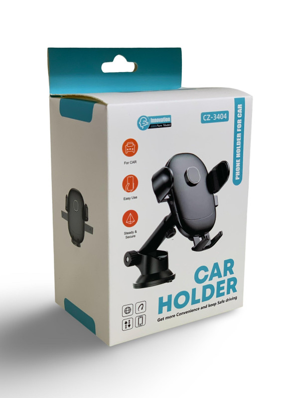 حامل هاتف عملي ومتين مصمم للاستخدام داخل السيارة، يثبت بسهولة على الزجاج الأمامي أو لوحة القيادة بفضل قاعدة الشفط القوية. يتميز بذراع قابل للتعديل لتوفير زاوية رؤية مثالية أثناء القيادة، مع مشبك جانبي يمسك الهاتف بإحكام ويمنع سقوطه.