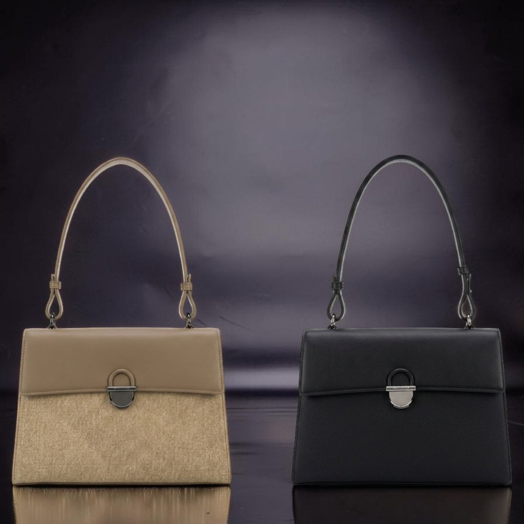 حقيبة يد كبيرة الحجم تتميز بقفل معدني ذهبي على شكل حرف "B" أو "M" (حسب الماركة مثل Marc Ellis أو Marella). تأتي بمقابض علوية وحمالة كتف بسلسلة ذهبية، مع تقسيمات داخلية واسعة