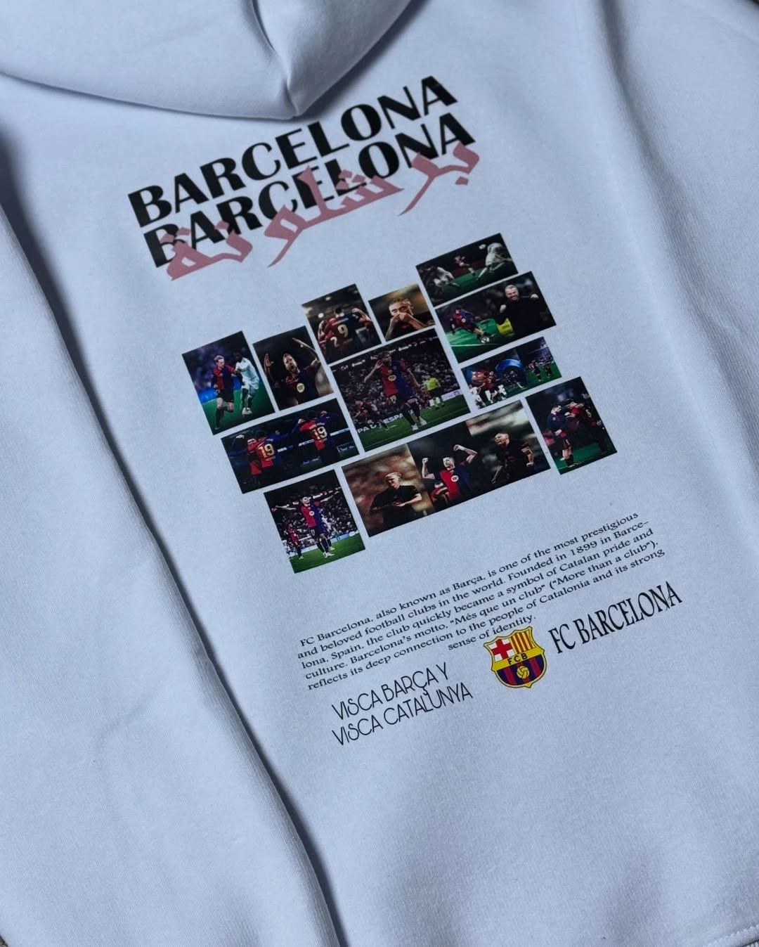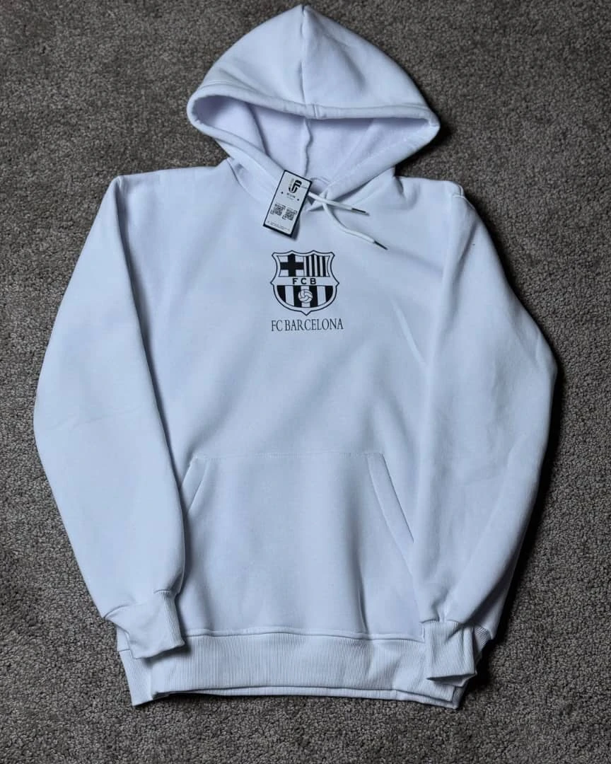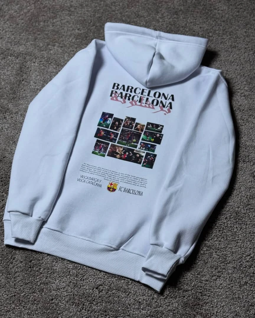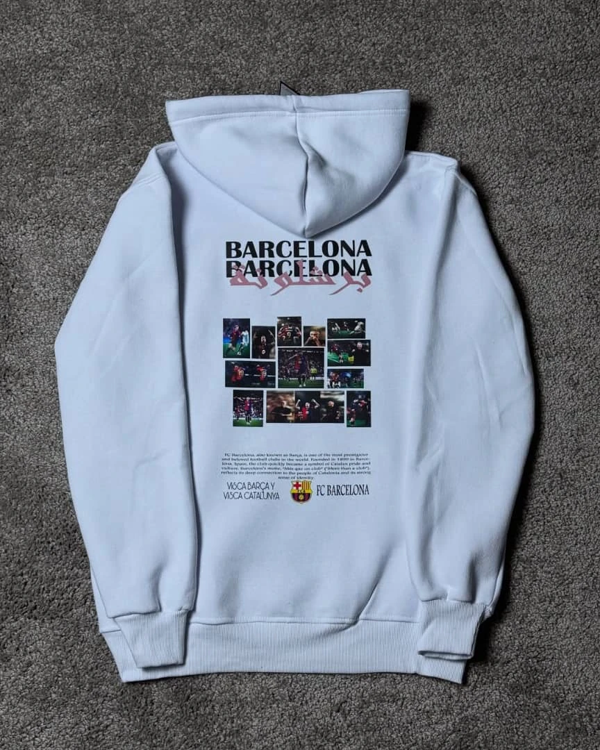 هودي شتوي عالي الجودة مصنوع من قماش قطن نخب أول يمنح دفء وملمس ناعم ومتانة للاستخدام المتكرر. يتميز بطبعة كبيرة وملونة على الظهر تحت شعار BARCELONA وأسلوب تصميم احترافي مع شعار نادي برشلونة مطبوع بالجهة الأمامية. رباط للهود، جيب كنغر أمامي، وحواف مضلعة تمنح ملاءمة مريحة ومظهر أنيق. قطعة مميزة للمشجعين تجمع بين الراحة والهوية الكروية.