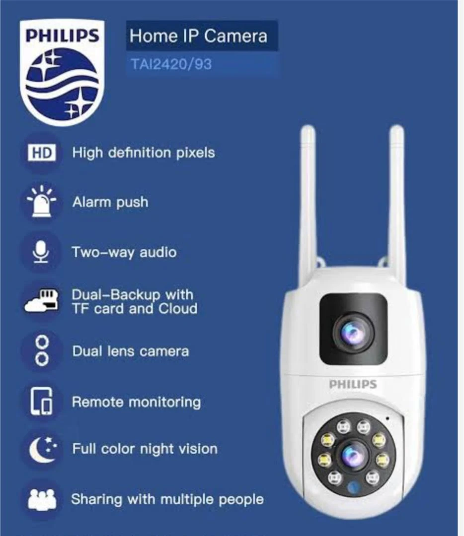 *✳️هذا المنتج هو كاميرا مراقبة منزلية من نوع Philips Home IP Camera تأتي على شكل لمبة تُثبت في قاعدة الإضاءة العادية*