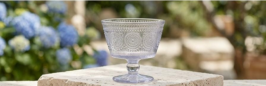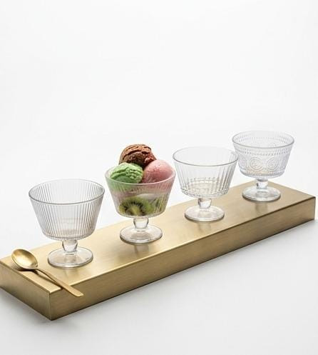 كاسات أنيقة مصنوعة من الزجاج الشفاف بتصميم محفور ولمسة كلاسيكية، مزودة بقاعدة ثابتة لسهولة التقديم. مناسبة لتقديم الآيس كريم، الحلويات، الفواكه، المهلبية، والتشيزكيك. تضيف مظهرًا راقيًا لطاولة التقديم، وتناسب الاستخدام المنزلي والمناسبات الخاصة.