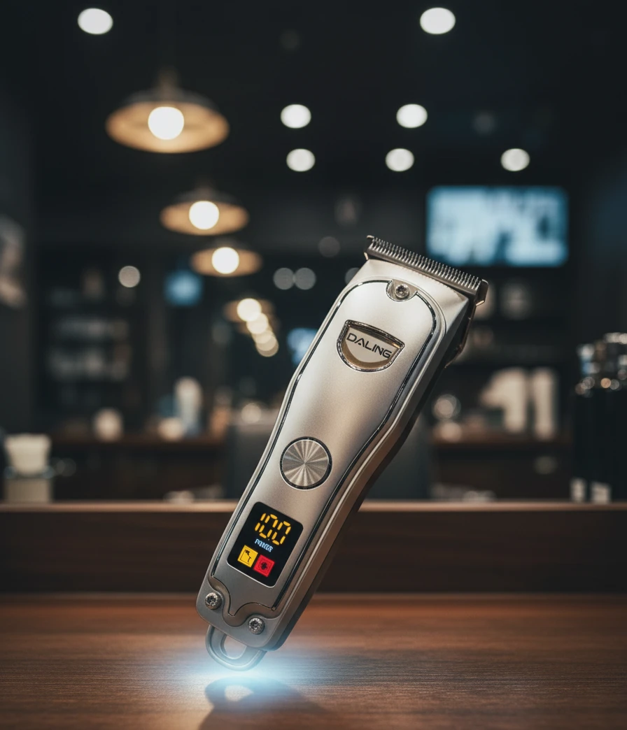 ماكينة حلاقة شعر احترافية من علامة DALING مصممة للاستخدام الشخصي والمهني. تتميز بشفرة حادة عالية الدقة لقص سلس ومتساوٍ، وبطارية قوية تدوم لفترة طويلة، مع شاشة عرض LCD لعرض مستوى الشحن ونسبة الطاقة. تدعم الشحن عبر منفذ USB لسهولة الاستخدام في أي مكان. تصميم أنيق وخفيف الوزن يمنح تحكمًا مريحًا أثناء الحلاقة، ومناسبة لتحديد اللحية وقص الشعر بدقة.