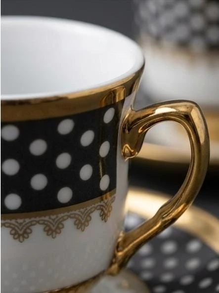أضف لمسة من الفخامة إلى لحظات قهوتك مع هذه المجموعة الرائعة من فناجين القهوة المصممة بدقة. تتضمن المجموعة 6 فناجين قهوة مع 6 صحون، مصنوعة من الخزف الفاخر المزخرف بتصميم عصري باللونين الأبيض والأسود مع لمسات ذهبية تضفي لمسة من الأناقة. مثالية للاستمتاع بالقهوة الصباحية أو في جلسات الشاي مع الأصدقاء والعائلة، حيث تجمع بين الجمال والعملية لتمنحك تجربة قهوة لا مثيل لها.