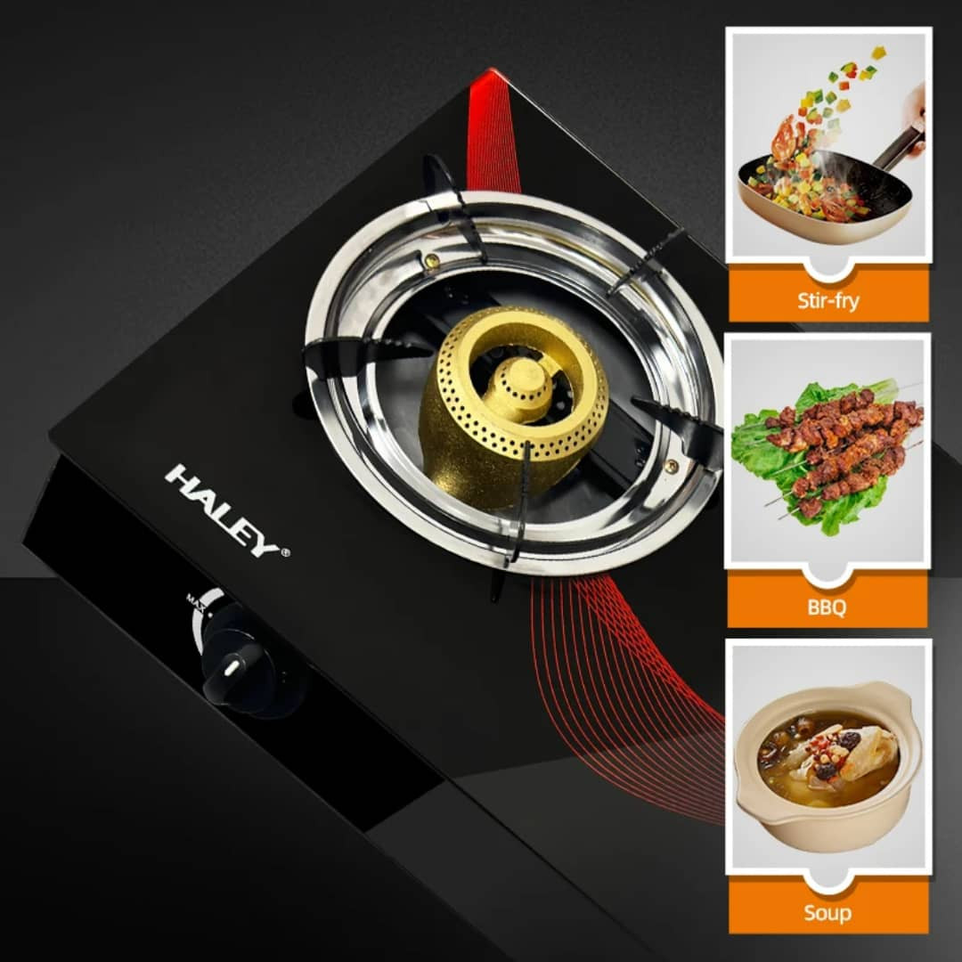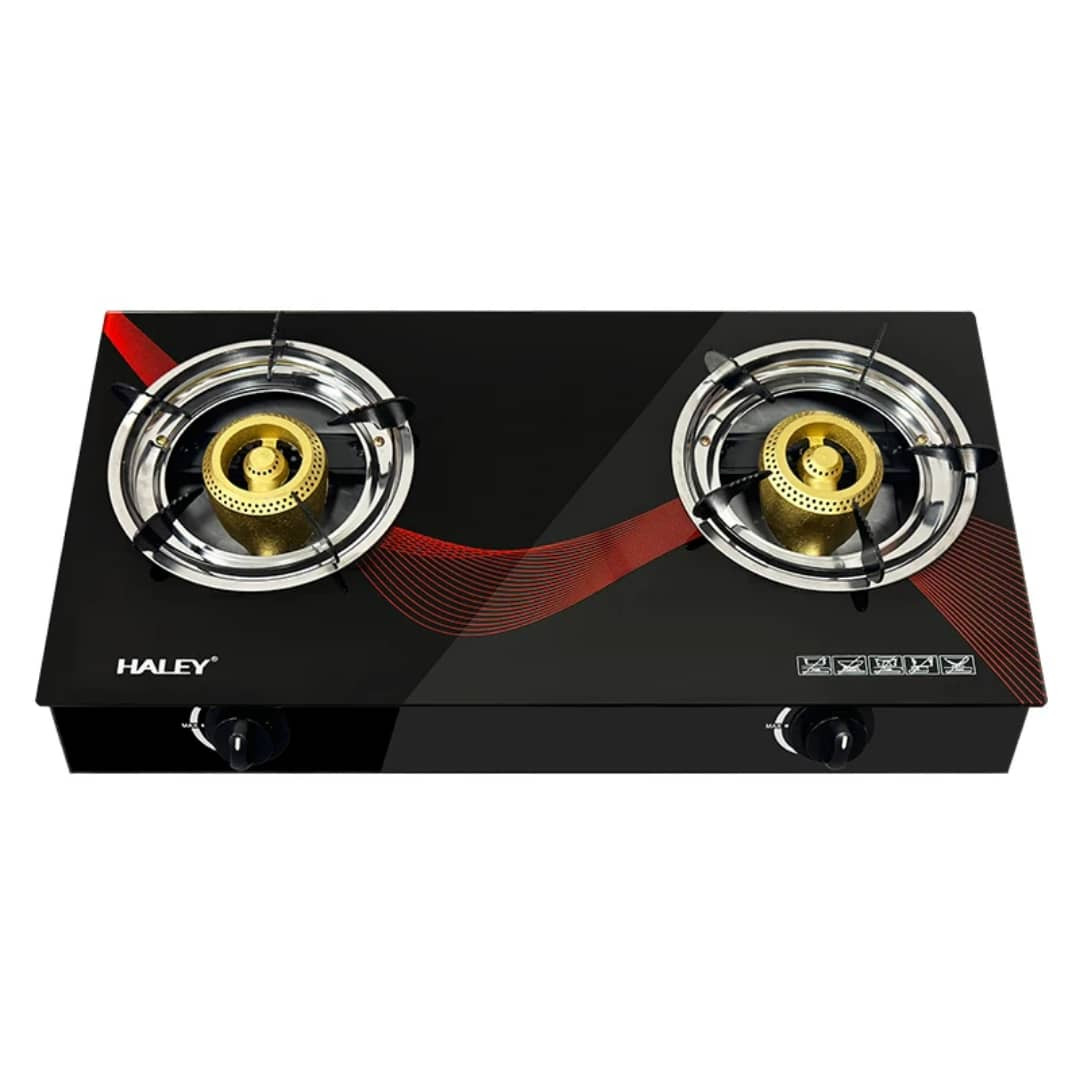 جهاز المطبح للطهي تقِ بتجربة الطهي مع موقد HALEY المزدوج. تصميم أنيق بسطح أسود مزخرف، شعلات نحاسية عالية الأداء، وجسم من الستانلس ستيل المقاوم للحرارة. يتميز بإشعال ذاتي، أقدام مانعة للانزلاق