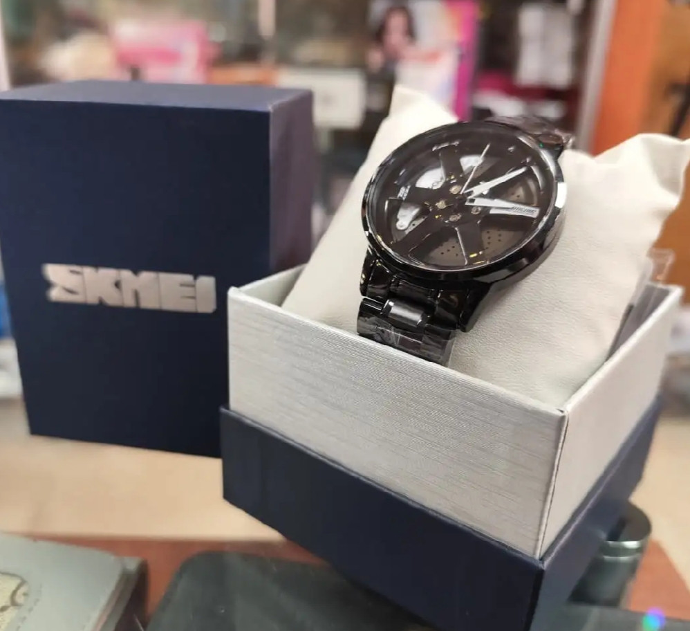 ساعة فخمة رجالية على شكل جنط سيارة باللونين الاحمر والابيض