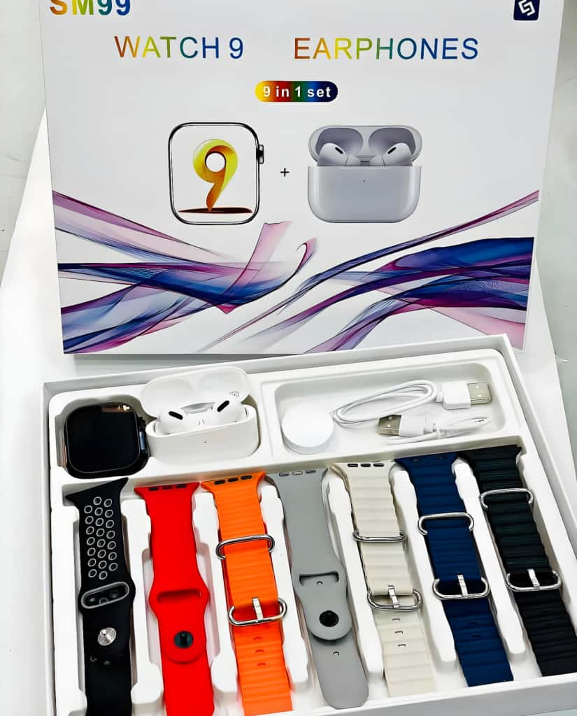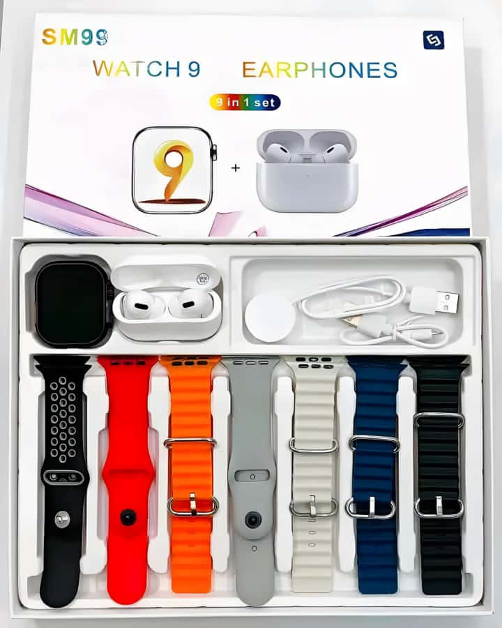 ? سـاعـة ذكـيـة SM99 Watch 9 مـع سـمـاعـات أذن لاسـلـكـيـة – مـجـمـوعـة 9 فـي 1