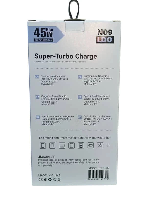 قدرة شحن عالية: 45W GaN لتوفير أداء سريع وآمن.