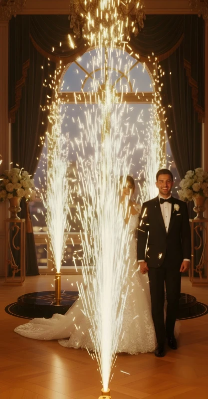هـذه هـي الـلـمـسـة الـنـهـائـيـة الـتـي يـبـحـث عـنـهـا مـنـظـمـو الـحـفـلات الـنـخـبـة . شـرارات بـاردة نـقـيـة ، هـادئـة ، وبـلا دخـان ، تـمـنـحـكـم خـلـفـيـة كـالـكـريـسـتـال الأبـيـض ?✨.