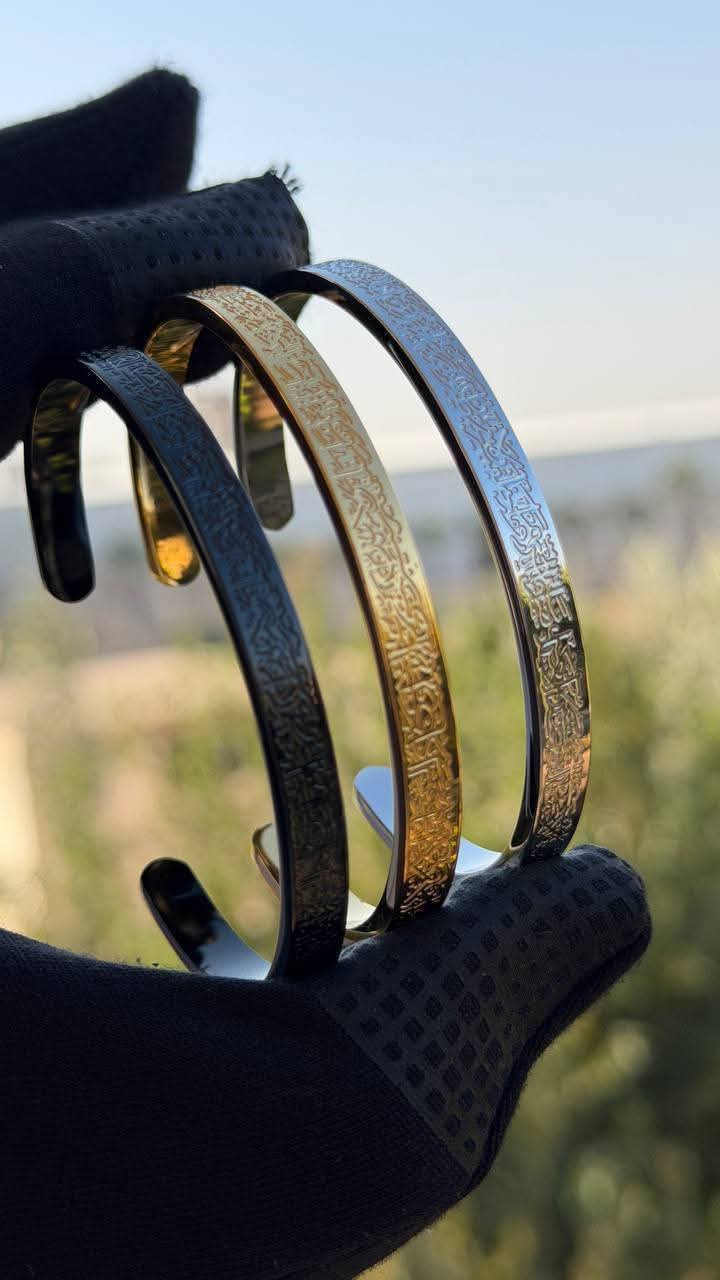 *حـصّـن مـن تُـحـب , أتـقـل كـولـكـشـن أكـسـسـوار " آيـة الـكـرسـي " قـطـعـة ألـك و قـطـعـة لـشـخـصـك الـمـفـضـل ??????✨️ !!* سـوار آيـة الـكـرسـي الألـوان ( دهبي ، فضي ، اسود )