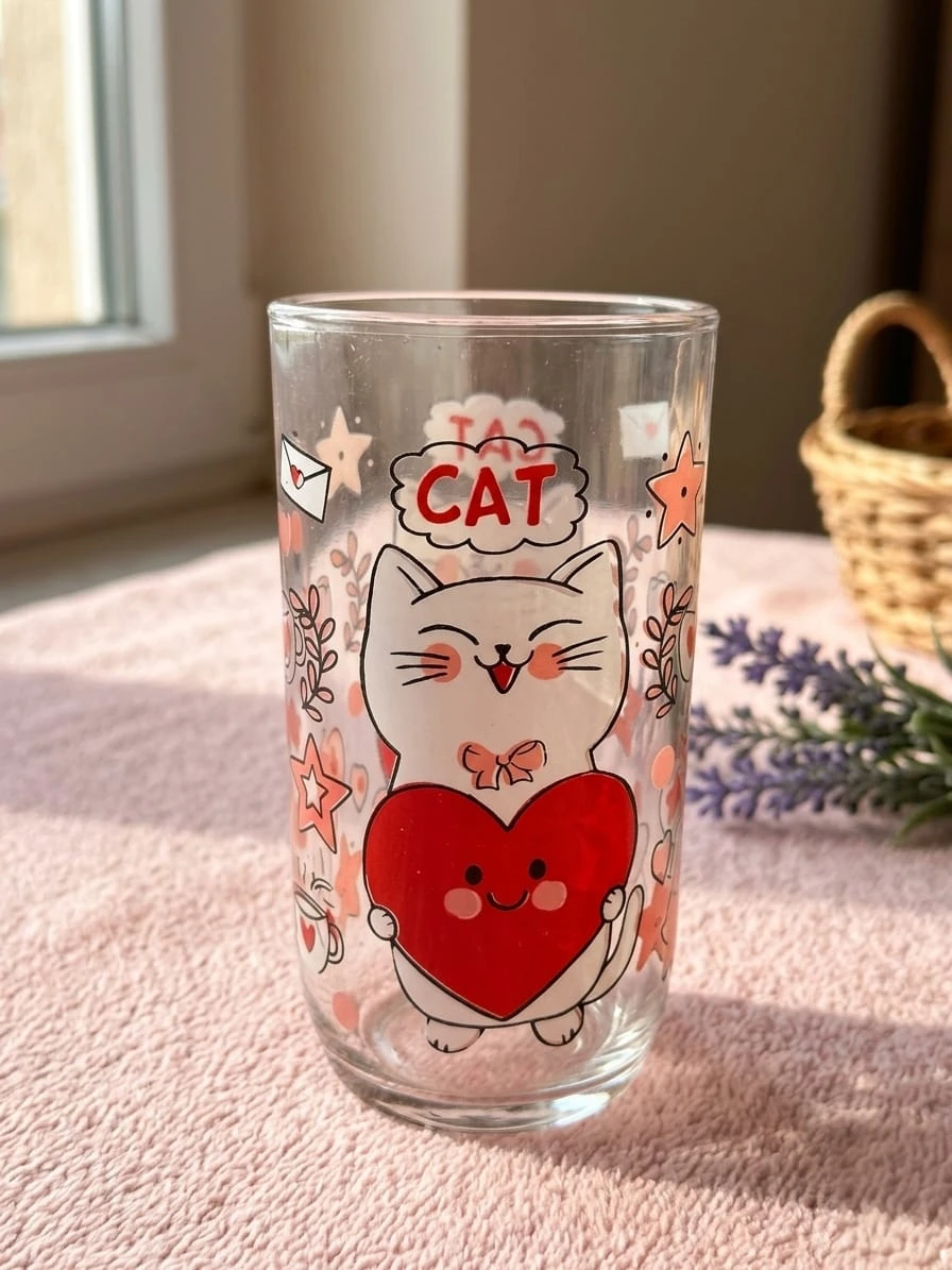 طقم أكواب زجاجية أنيقة مزينة برسومات قط لطيف يحمل قلبًا أحمر، بتصميم جذاب ومناسب للاستخدام اليومي. مصنوع من زجاج شفاف عالي الجودة، ومناسب لتقديم العصائر، الماء، المشروبات الباردة والساخنة. يأتي في عبوة عملية تحتوي على 4 أكواب، مثالي للاستخدام المنزلي أو كهدية جميلة.