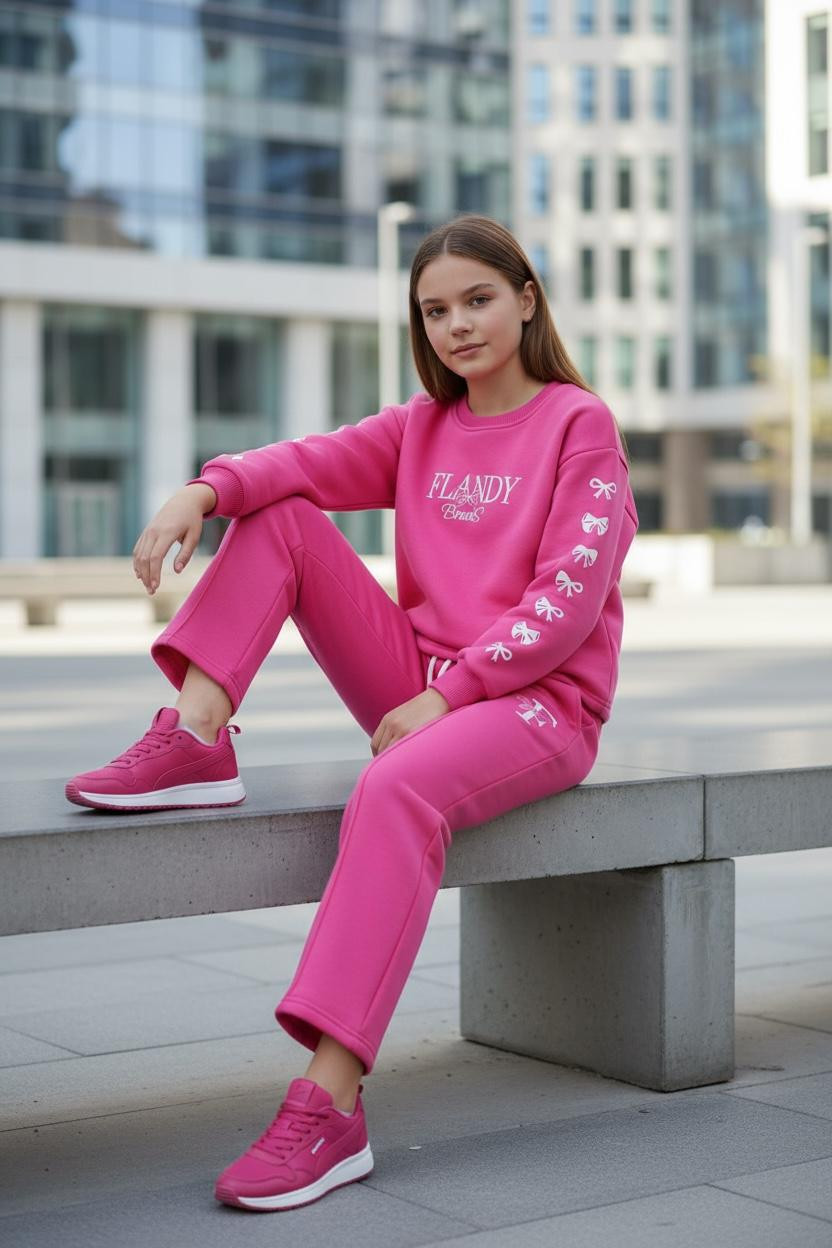 طقم أنيق يجمع بين الراحة والفخامة في تصميم واحد. خامة ناعمة تمنح إحساساً دافئاً ومريحاً طوال اليوم، مع قصّة عصرية تبرز الإطلالة بشكل مرتب وجذاب.