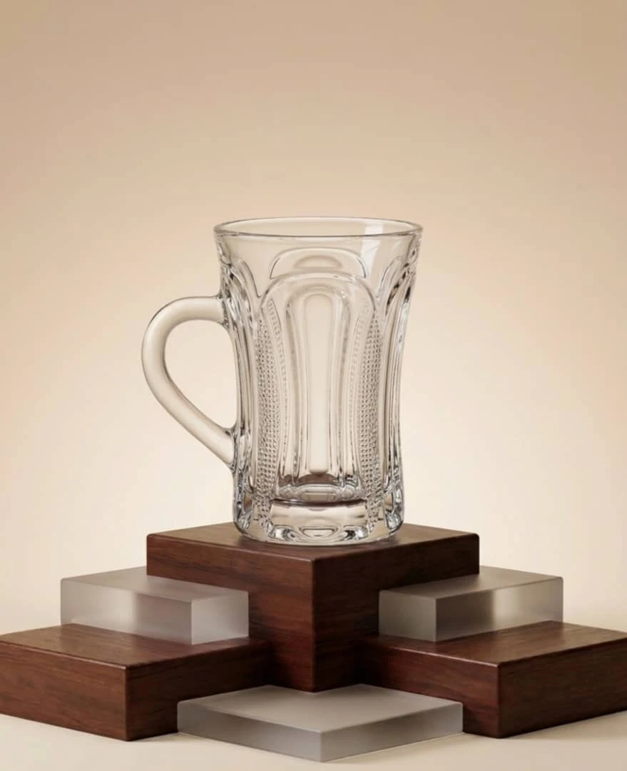 طقم أنيق من كاسات الشاي المصنوعة من زجاج شفاف عالي الجودة، بتصميم كلاسيكي ومقبض مريح لسهولة الاستخدام. مناسب لتقديم الشاي، القهوة العربية، والمشروبات الساخنة والباردة. يتميز بالمتانة وسهولة التنظيف، ويأتي داخل علبة كرتونية للحفظ والنقل الآمن. مثالي للاستخدام اليومي أو للضيافة.