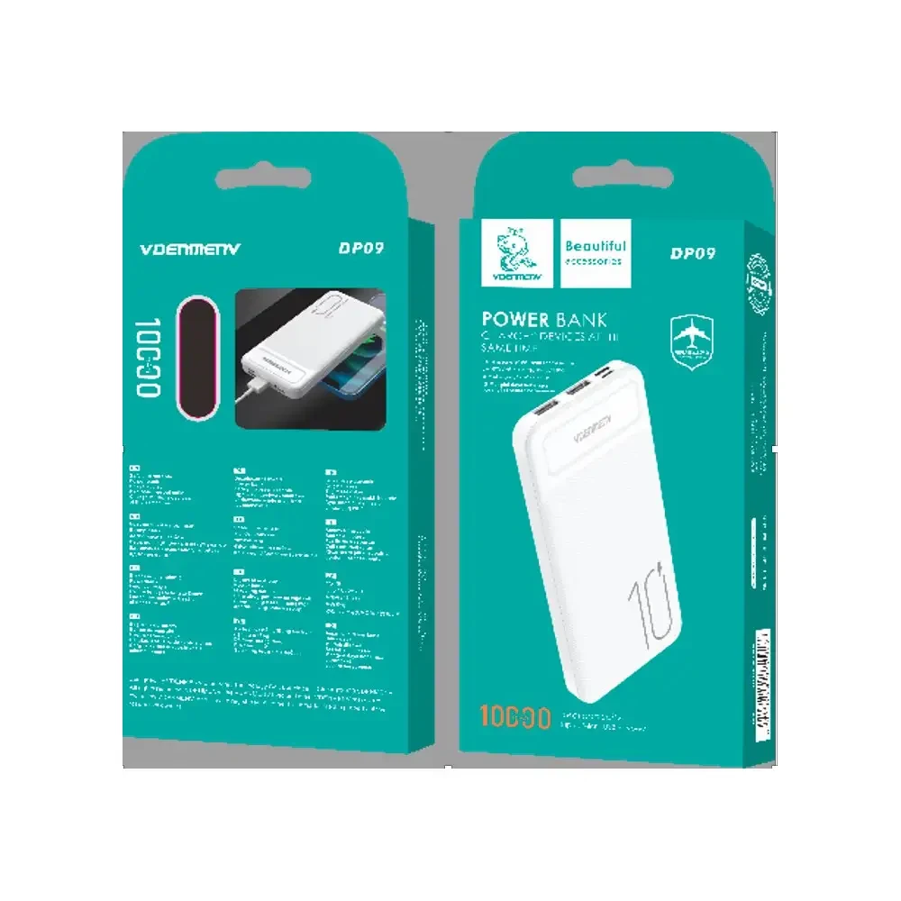 VDENMENV 87 باور بانك سعة 10000 ميلي أمبير. لون أبيض. استطاعة 10 واط. مأخذين يو اس بي آي لشحن جهازين في نفس الوقت. مأخذ تايب سي ويو اس بي لشحن الباور. متوافق مع جميع أنواع الأجهزة وأجهزة الراوتر. شحن لكافة المحافظات في الجمهورية العربية السورية. توصيل لكافة المناطق في مدينة حلب.